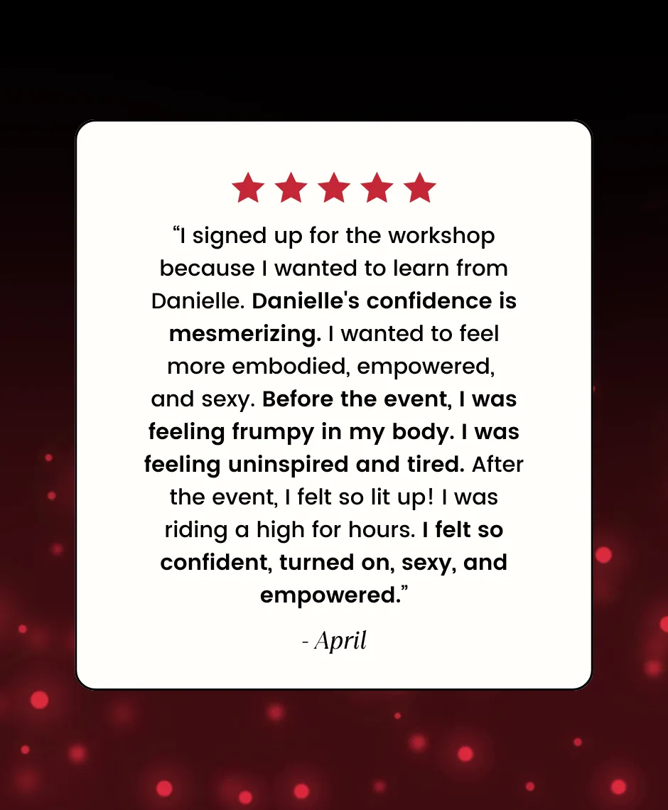 Right now you may feel disconnected from loving your body, or shame around expressing who you truly are, and it’s keeping you stuck. I know how to help you connect with your sensual energy and embrace the art of seduction, which I firmly believe every woman deserves to learn to feel confident and sexy. xo